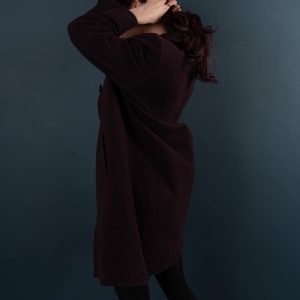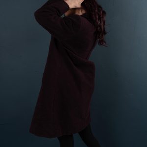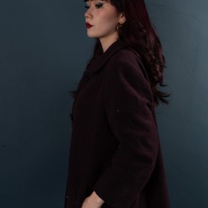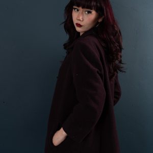 This understated yet elegant coat boasts a rich, deep plum hue. The single-breasted design and simple lapel enhance its sophistication, while the relaxed shoulders and soft A-line silhouette create a modern yet flattering shape. The knee-length cut pairs easily with cardigans or dresses, and features concealed side pockets for convenient storage of everyday essentials. Simple details and tonal buttons make it ideal for a variety of occasions, from work and evening events to weekend relaxation.