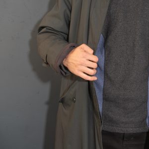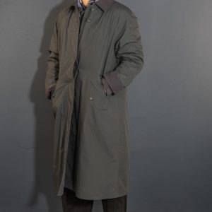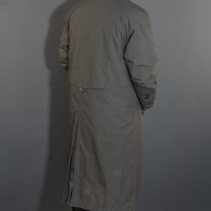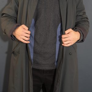 This deep olive green trench coat combines practicality and workwear style, helping you easily handle various weather conditions. A smooth zipper at the front, paired with a snap-button windproof placket, creates a clean and streamlined look, effectively protecting against the cold wind. Dark corduroy collar (with collar buttons) and matching cuff trim add texture and comfort. Snap-button slanted handwarmer pockets provide convenient storage for small items. The knee-length design offers excellent drape and allows for easy layering with cardigans or blazers, offering understated elegance suitable for commuting, dinner, and weekend city walks.