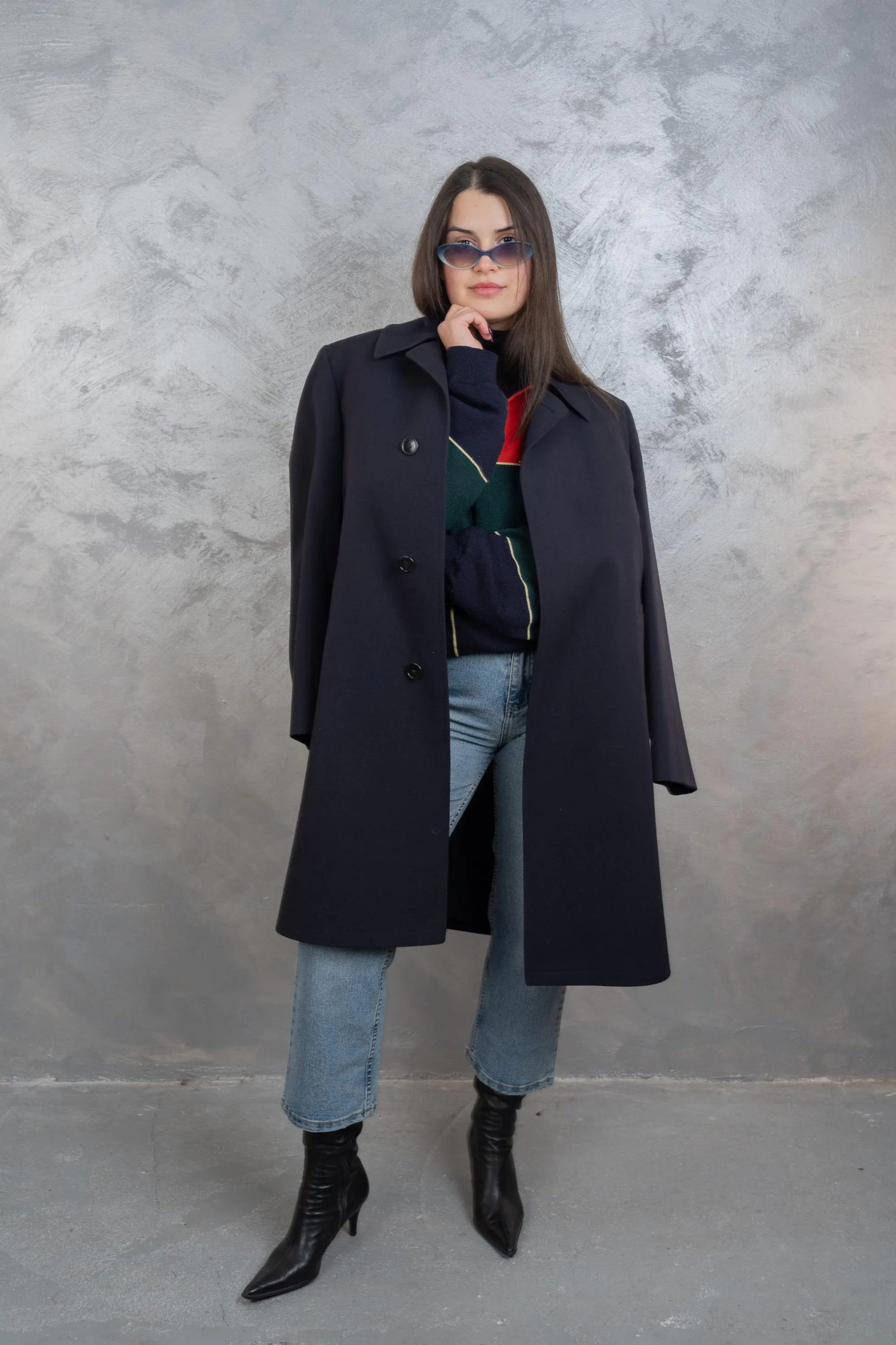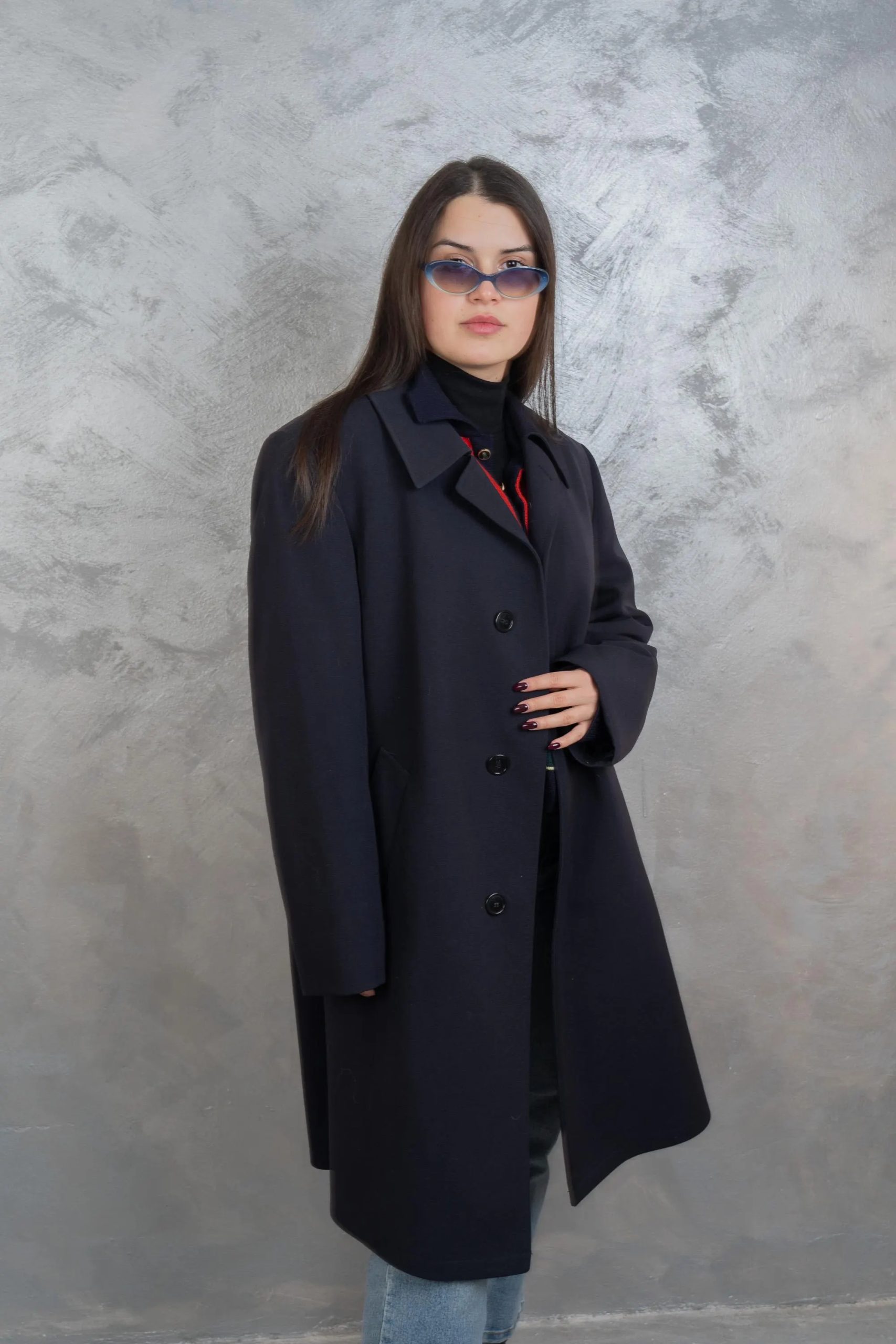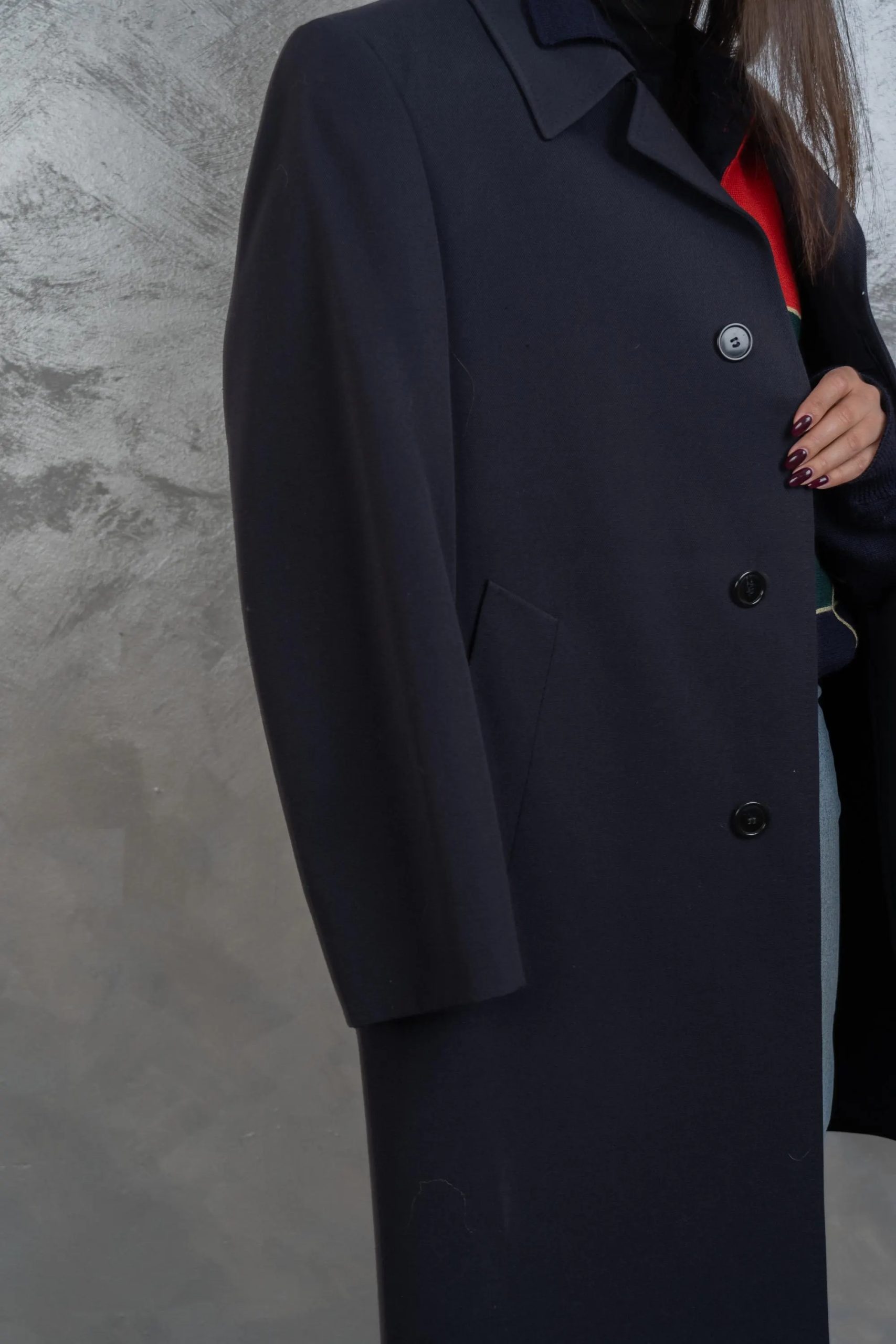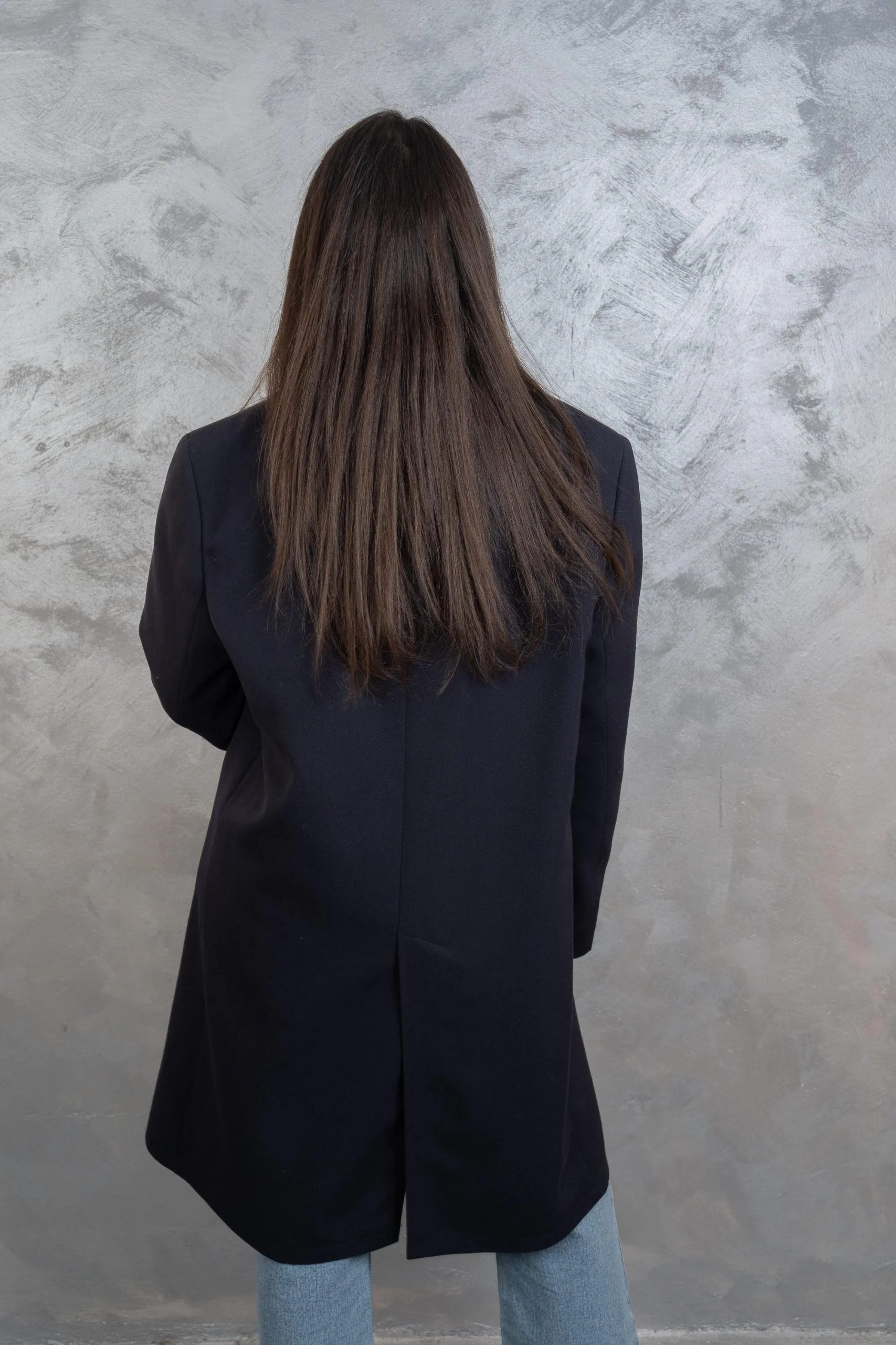 This sophisticated everyday coat comes in a deep navy blue, with a classic single-breasted design that will never go out of style. The crisp lapel and straight, mid-length cut create a clean silhouette, easily layered with sweaters, hoodies, or for a polished professional look. Patch pockets provide easy access to essentials, and the smooth, crisp fabric maintains its shape and ensures comfortable wear. Simple details and dark buttons make it an understated choice for commuting, dinner dates, and more.